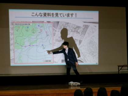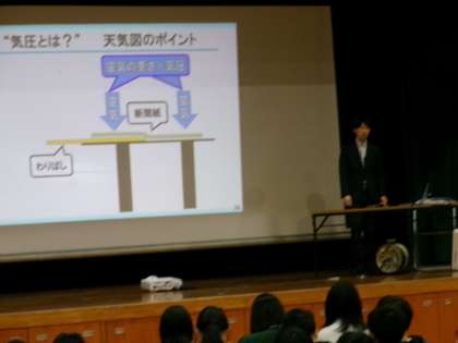 【気象キャスターによる出前授業】2/9 公開日 2024/02/13 更新日 2024/02/13 学校行事 朝の情報番組で活躍しているNHK名古屋放送局の気象キャスター土井邦裕さんによる出前授業を4・5・6年生が受けました。気象キャスターの仕事についてや、天気図の見方、気圧について教えていただきました。また、地球温暖化のお話では、温暖化対策をするのとしないのとでは未来の地球の気温が変わってくることが分かり、温暖化対策の必要性を感じました。