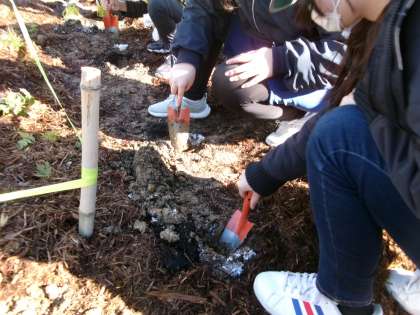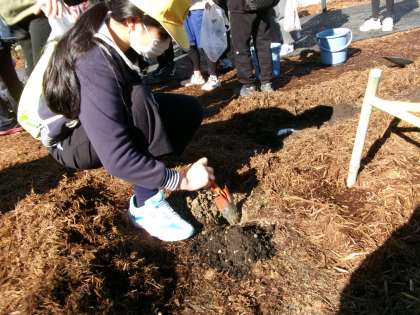 【6年生 どんぐり植樹】 2/26 公開日 2024/02/27 更新日 2024/02/27 各学年から 6年生が、4月にオープン予定の豊田市博物館にどんぐりを植樹しました。豊田市の多くの小学生が4年生から始めたどんぐりプロジェクト。子どもたちは、どんぐりの木が大きく育ってほしいと願いをこめ1本1本丁寧に植えました。