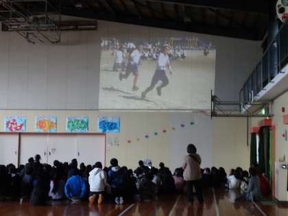 【6年生を送る会(3)】3/5 公開日 2024/03/06 更新日 2024/03/06 学校行事 5年生からは、6年生の担任の先生に関するクイズが出題されました。6年生はグループで協力して解答を考えていました。その後、6年間の思い出ムービーを見ました。 校旗と伝統を引き継ぐ式を行いました。5年生の皆さんは、4月から、最高学年です。古瀬間小学校のリーダーとしての活躍を期待しています。