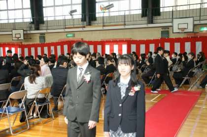 卒業式続きです。卒業生お別れの言葉、歌、そしていよいよ退場です。