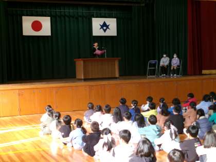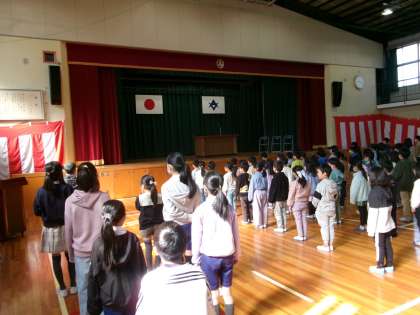 令和5年度修了式を行いました。久しぶりに体育館で集合して式を行いました。1年生から5年生まで、どの学年もとてもよく頑張り、成長した1年でした。校長先生から修了証を受け取りました。そして、1,3,5年生の代表者が今年1年を振り返り、これから頑張りたいことを発表しました。最後に全員で校歌を歌いました。