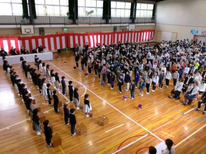 【入学式・始業式】4/4 公開日 2024/04/08 更新日 2024/04/08 お知らせ 令和6年度が始まりました。新たに36名の1年生を迎えました。1年生は、少し緊張しながらもしっかり前を向き、校長先生や来賓の方のお話を聞いていました。6年生の代表から歓迎の言葉を受けました。1年生の皆さん、何か困ったことがあったら、お兄さん、お姉さんが助けてくれます。安心して、学校にきてくださいね。