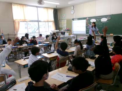 4年2組は、社会の学習で今まで行ったことのある都道府県を発表しながら地図旅行を楽しみました。
