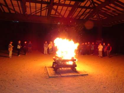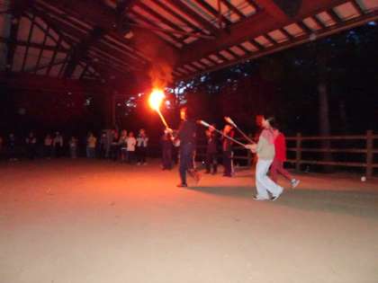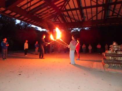 火の神から友情の火と協力の火を授けられ、キャンプファイヤーが始まりました。