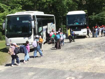 【野外学習 2日目 8】 公開日 2024/05/17 更新日 2024/05/17 各学年から 野外学習センター、さようなら。 楽しかった2日間があっという間に終わりました。名残惜しい思いでバスに乗りました。 所員さんが手を振って見送りをしてくださいました。