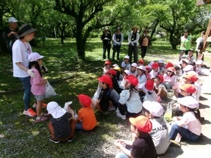 【1年生 梅採り】6/3 公開日 2024/06/03 更新日 2024/06/03 各学年から 1年生は、浄願寺に梅採りに行きました。保存会の方が梅を枝から落とすためにゆすってくださったり、枝を切って採りやすくしてくれました。子どもたちはたくさんの梅を拾うことができました。学校へ戻る前に、梅の形、においなど今回の校外学習で気が付いたことを発表し合って、学習の振り返りをしました。
