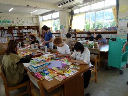 【図書ボランティアの活動】 6/14 公開日 2024/06/18 更新日 2024/06/18 地域学校共働本部 本年度初めての図書ボランティアの活動です。子どもたちが気持ちよく図書室を使えるように整備してくださいます。掲示物も7月に向けて夏らしいものにしてくださいました。