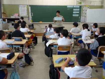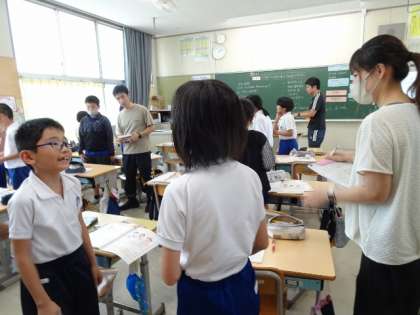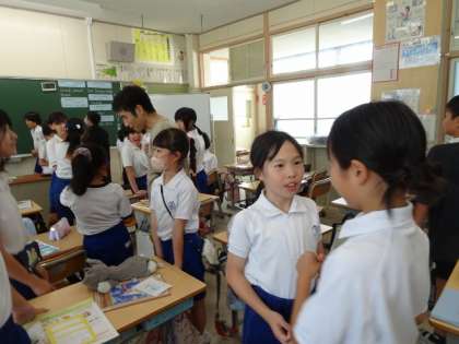 【5年1組 外国語 できることを伝え合ってHAPPYになろう】7/8 公開日 2024/07/24 更新日 2024/07/24 各学年から 5年1組で外国語の研究授業を行いました。自分や相手のできることをcanを使って伝え合いました。リアクションを使って会話を上手につなげていました。