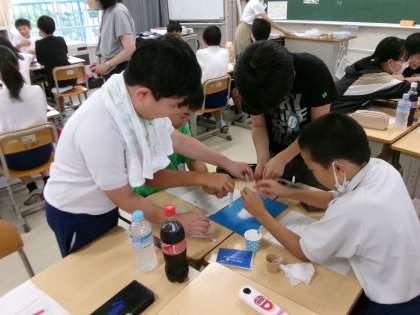 養護教諭が6年生で食育の授業を行いました。市販のジュース類の中にどれだけ糖分が入っているのかを調べる実験をしました。子どもたちは、500mlのペットボトル1本の中にたくさんの糖分が入っていることに驚き、健康への影響について話し合いました。夏休みに家庭で飲み物を選ぶ際の参考にしてほしいと思います。