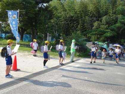 【あいさつ・返事・ありがとう強調週間】9/9~ 公開日 2024/09/10 更新日 2024/09/10 特別活動 TEAM益富「あいさつ・返事・ありがとう週間」です。計画委員会の児童が先週金曜日に登り旗をたてました。9日は朝、登校してきた児童にあいさつを呼びかけました。