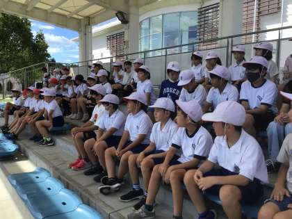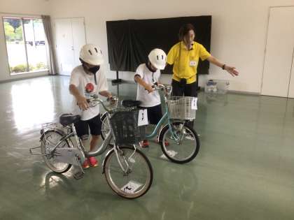 【4年生 交通安全教室】9/11 公開日 2024/09/12 更新日 2024/09/12 各学年から 4年生は、交通安全学習センターへ行きました。大型車による巻き込み実験を通じ、車の死角・内輪差について学びました。また、自転車の危険予測・自転車の点検を学習し、実際の走行練習で、正しい知識や技量を身に付けました。猛暑でしたが、屋内練習場で快適に学習することができました。