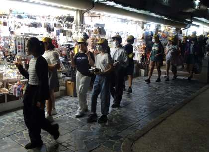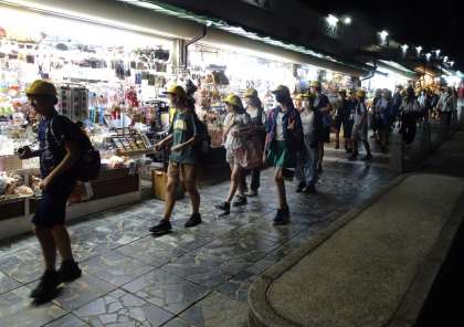 夕食の後は、夜の奈良の町に出かけます。奈良にはどんなお土産があるかな。 わくわくしながらレッツゴー。