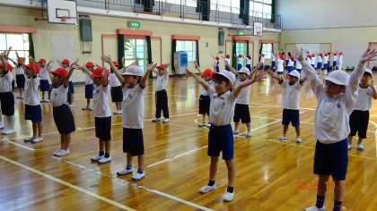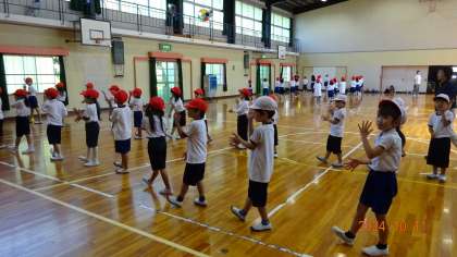 運動会練習を頑張っています。ダンスと玉入れの練習をしています。