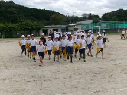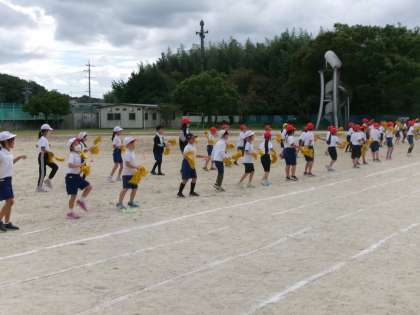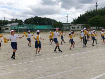 かっこよく踊れるように、一生懸命練習している3・4年生です。演技の初めにマスゲームが入ります。前後左右を意識して、スムーズに移動できるようにがんばっています。