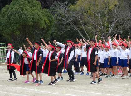 【運動会 応援合戦】10/31 公開日 2024/11/05 更新日 2024/11/05 学校行事 全校応援合戦です。まず、「ゴーゴーゴー」を元気よく歌いました。その後、赤白それぞれのオリジナル応援を披露しました。どちらも甲乙つけがたく一体となって応援をしました。