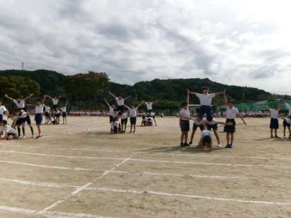 【運動会 5・6年生「special collaboration(1)」】10/31 公開日 2024/11/05 更新日 2024/11/05 学校行事 5・6年生合同でスタンツ、フラッグの演技に挑戦しました。高学年らしい力強い演技、美しい演技、気合の入った表情がみられました。スタンツの様子です。