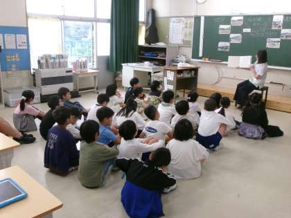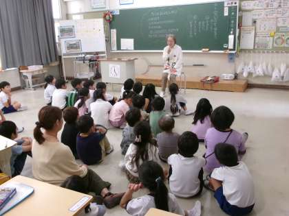 【お話の森 低学年】11/1 公開日 2024/11/05 更新日 2024/11/05 地域学校共働本部 お話の森さんによる読み聞かせがありました。季節に合わせてどんぐりや松ぼっくりの話を読んでいただいたクラスもありました。