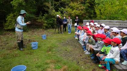 1年生は、11月5日(火)にトヨタの森へ出かけました。今回のミッションはトヨタの森の秋を見付けることです。今回もワンダーパワー(五感)を使って、お茶の葉っぱが苦いこと、カツラの茶色い葉っぱは綿菓子のような甘い香りがすること、池にたくさんいたオタマジャクシが無事にカエルになって森の中で元気に過ごしていること、おいしい野菜やお米ができるのは、森の葉っぱやキノコや虫たちが栄養のある土を作ってくれているからだということなどたくさんの発見と学びができました。