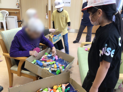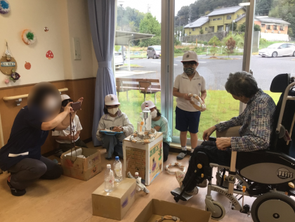 3年2組の児童が益富の楽園を訪問しました。これまで3年生は総合的な学習の時間で福祉について勉強してきました。そのことを生かして実際に高齢者の方々と交流し、子どもたちが考えたゲームで一緒に遊びました。言葉を伝えることに難しさを感じつつも職員の方々に補助をしていただきながら、笑顔でゲームを楽しんでいただくことができました。