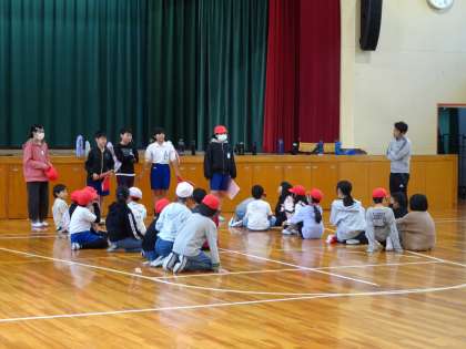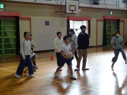 【レッツ班活動】11/25 公開日 2024/12/09 更新日 2024/12/09 特別活動 6年生を中心にレッツ活動(縦割り班活動)を行いました。どの学年でも楽しめるような遊びを6年生が考えました。ドッジボールやタグラグビー、ハンカチ落とし…班ごとにいろいろな遊びをしていました。