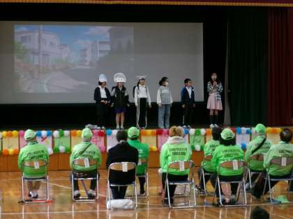 グリーンレンジャーさん、交通指導員さんの仕事について調べたことを劇とパワーポイントで発表しました。