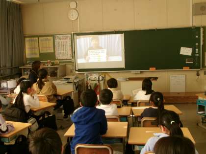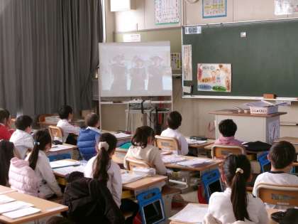 【古瀬間のつどい 保健委員会(放送による集会)】12/9 公開日 2024/12/16 更新日 2024/12/16 特別活動 今回の児童集会「古瀬間のつどい」では、保健委員会が作成した風邪予防動画をクラスごとに見ました。教室の換気の仕方、ウイルスをやっつけるために太陽の光を浴びることの大切さ、石鹸をつけて手を洗うときの注意などをクイズにして全校に伝えました。「ウイルスノックアウト風鈴」を教室の出入り口につけて換気を呼び掛けています。