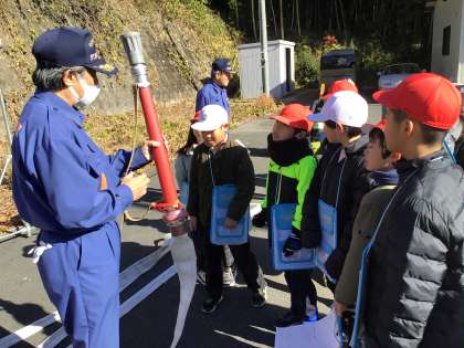 【3年生 消防団の見学】12/10 公開日 2024/12/16 更新日 2024/12/16 各学年から 3年生は、社会科「くらしを守る」の学習では、消防の仕事について学んでいます。地域にある消防団を見学し、消防車を見たり、乗せていただいたりしました。実際に使うホースや道具についても見せていただき、消防団の大切な役割について学びました。