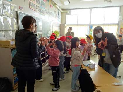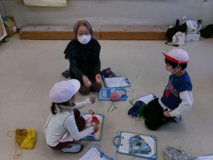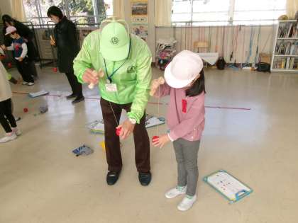 【1年生 昔遊びを名人に学ぶ会(1)】1/8 公開日 2025/01/14 更新日 2025/01/14 各学年から 1年生は、昔遊びを地域ボランティアの方から学びました。この会は12月にも行い、2回目です。この1か月で一生懸命練習した子どもたち。これまで練習してきた成果を見せ、さらに上達するためのコツなどを学んでいました。お手玉、あやとり、けん玉の様子です。