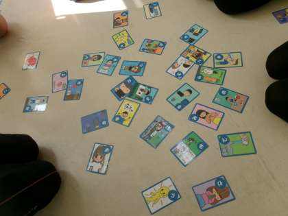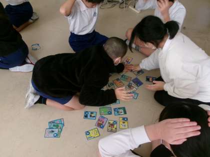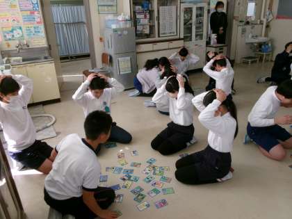 【6年生 古瀬間小健康かるたをしました】1/8 公開日 2025/01/14 更新日 2025/01/14 各学年から 保健委員会が中心となって、古瀬間小健康かるたを作成しました。1月の身体測定のときに保健室でそのかるたを使って遊びました。楽しみながら健康について学ぶことができました。それぞれの札に書かれているかるたの内容は全校から応募したものです。写真は6年生がかるたとりをしている様子です。