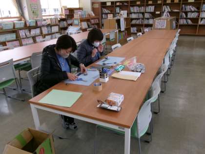 年が明けて最初の図書ボランティアの活動です。2月に向けた掲示物を作成していただきました。
