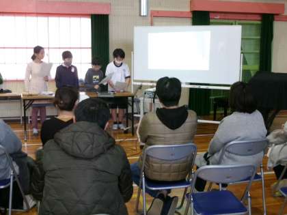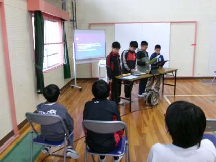 5年生の学習発表会ではこれまで学習してきた中からおうちの人に伝えたい内容を選んで、グループごとに分かれて発表しました。プレゼンテーション、劇、クイズなど伝え方を工夫して発表しました。