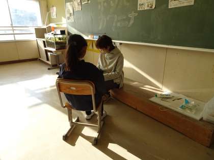 写真は、実際に相談を始める前に児童の許可を取り、背面から撮影しています。