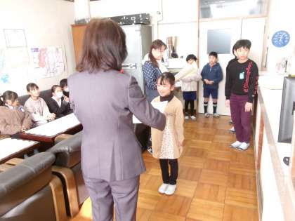 校長室で表彰式を行いました。リモートで各クラスで様子を見て、拍手を送りました。