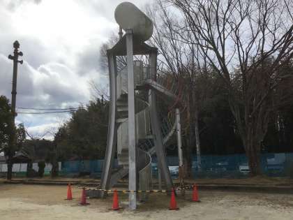 運動場西にあったモニュメント「コクーンスライダー」が経年劣化のため市教委の指示により、撤去されました。2月22日から工事が行われ、今は更地になっています。今後は代替となる物は設置しないとのことで、子どもたちが広く活動できる場としていきます。コクーン内のタイムカプセルは校舎内で厳重かつ大切に保管させていただいています。