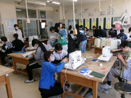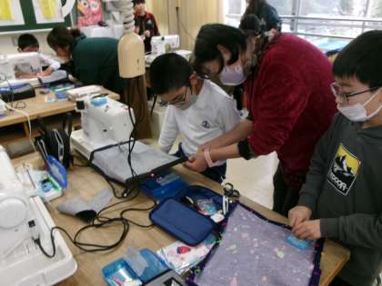 【5年生 ミシンボランティア】3/5 公開日 2025/03/17 更新日 2025/03/17 各学年から 5年生は、家庭科でランチョンマットを作っています。ボランティアさんにミシンを教えていただいたり、アイロンがけを手伝っていただいたりして、仕上げをしました。