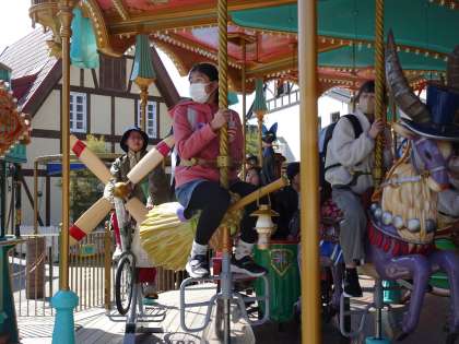 午後は、「魔女の谷」。「スカイドラゴン」や「メリーゴーランド」に乗って思い切り楽しみました。