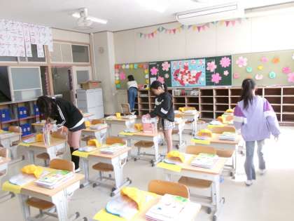 【入学式準備 新6年生】4/7 公開日 2025/04/21 更新日 2025/04/21 各学年から 春休み最終日、入学式・始業式を前日に控え、新6年生が準備のために登校しました。一人一人が役割を担い、担当の先生の指示の下、てきぱきと準備を行いました。 いよいよ令和7年度がスタートします。少し緊張気味の新6年生の表情から、最上級生としての意識が伝わってきました。