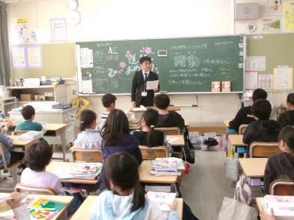 2〜6年生の各クラスの学級開き。新しい先生のお話を子どもたちは、どきどきしながら聞きました。1年間、一緒に過ごす友達と先生。笑顔いっぱい、楽しい学級で大きく成長できる1年にしていきたいと思います。
