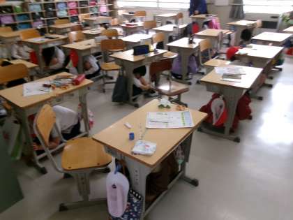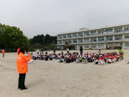 本年度第1回の避難訓練。大きな地震が起きた後、理科室から出火したという想定で教室から避難しました。今回の目的は、地震が起きたときの行動の仕方と避難経路を確認することです。子どもたちは、真剣な表情で取り組み、素早く運動場に整列することができました。南海トラフ地震など、大きな地震はいつ起きるか分かりません。万一の場合にも一人一人が冷静に考え、大切な命を守ることができるように、訓練を通して安全教育に取り組んでいます。