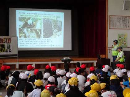 【4年生、6年生 ホタル学習】5/22 公開日 2025/05/26 更新日 2025/05/26 各学年から 4年生と6年生が益富交流館でのホタル学習に参加しました。蛍友会の皆さんのお話をきいて益富地区のシンボルであるゲンジボタルの生態や保全活動について学びました。