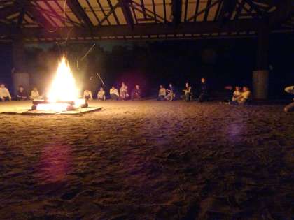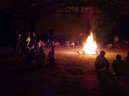 明々と燃えるファイヤーの炎。友情の火が灯り、みんなの気持ちが一つになりました。