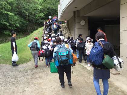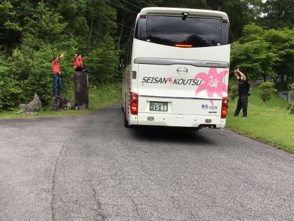 楽しかった野外学習も終わり。お世話になった所員さんに感謝の気持ちを伝え、総合野外学習センターとお別れしました。みんなの乗ったバスを所員さんが見えなくなるまで見送ってくださっていました。