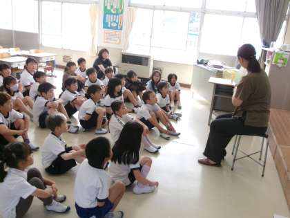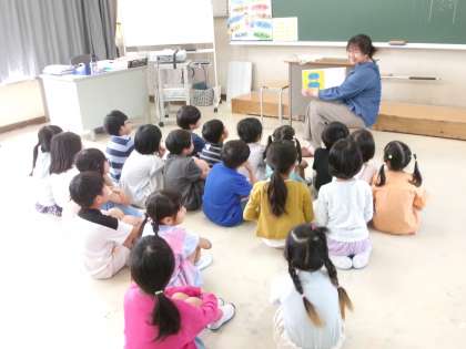 本年度最初の読み聞かせでした。ボランティアグループのおはなしの森さんが、学年に合ったお話を選んで読み聞かせや読み語りをしてくださっています。1・2年生の様子です。