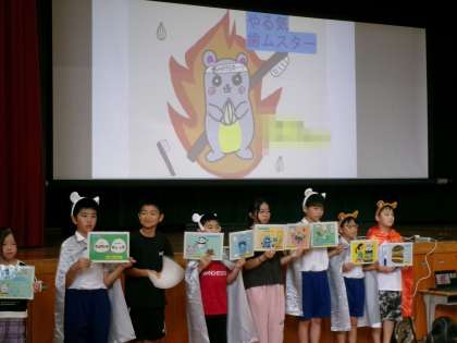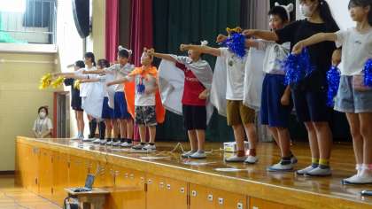 古瀬間のつどいを行いました。保健委員会の児童がけが予防について楽しい歌とダンス、スライド等で発表しました。