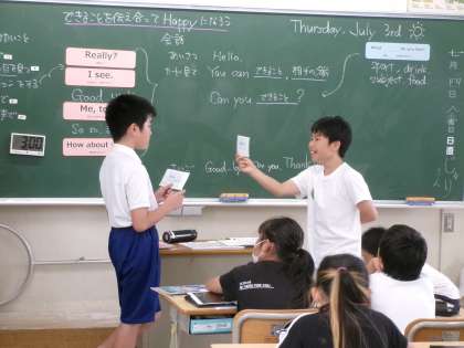 【学校訪問(4)】7/3 公開日 2025/07/09 更新日 2025/07/09 各学年から 学校訪問 5年生の様子です。1組は外国語でのコミュニケーション活動、2組は道徳で「寛容」をテーマに話し合いました。