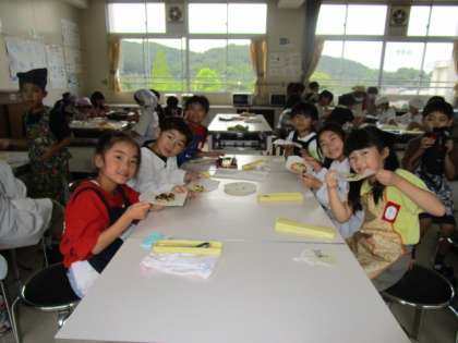 【2年生 野菜でピザパーティー】7/15 公開日 2025/07/23 更新日 2025/07/23 各学年から 2年生は畑でできた夏野菜を使ってみんなでピザパーティーをしました。餃子の皮にケチャップ、自分たちで作った野菜、チーズをのせてホットプレートで焼いて食べました。とってもおいしく感じられて、野菜が今までより好きになりました。