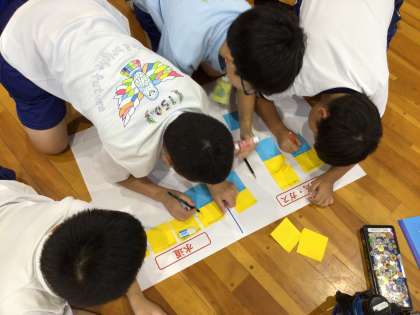 5年生は、豊田市防災課の方と愛知工業大学の教授、学生に来ていただいて、防災について学びました。災害に備えて、いつ・だれが・どのような動きをすればいいか、マイ・タイムラインに整理して考えました。学習の続きは家庭で考えることになっています。家族で防災について話題にしていただけるとありがたいです。