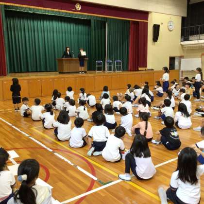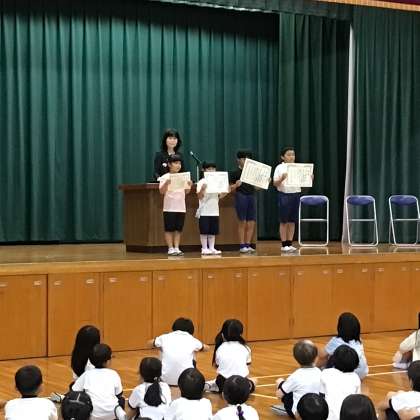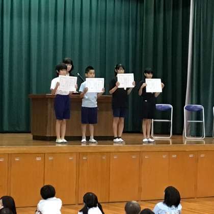 【前期後期切替式(2)】10/14 公開日 2025/10/16 更新日 2025/10/16 学校行事 前期後期切替式の続きです。夏休み中の作品募集(作文、詩。感想文)や150周年記念Tシャツの優秀デザインの表彰を行いました。