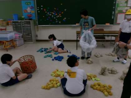 【運動会準備委員会】10/20 公開日 2025/10/28 更新日 2025/10/28 特別活動 30日の運動会に向けて、6年生の子どもたちが準備を行いました。運動会のテーマの横断幕、玉入れの玉などの準備をしました。