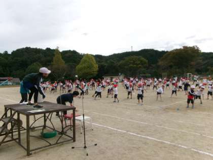 全校練習の続きです。KOSEMA体操をしています。今年は、150周年にちなんだ動きを取り入れています。